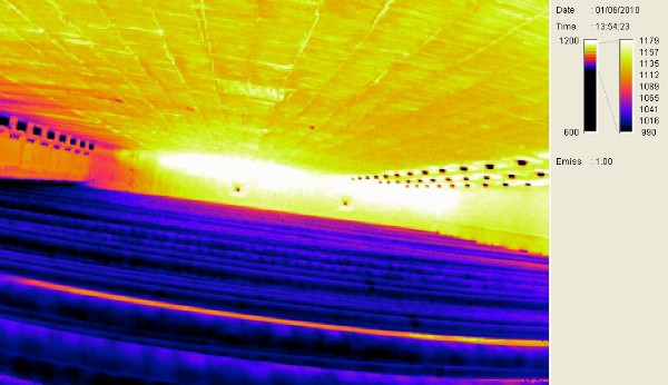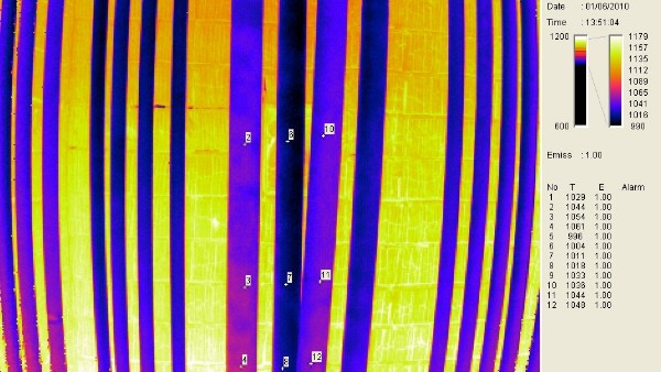 Only infrared cameras now are suitable to be installed into the furnace wall, measuring and visualizing the inside of the furnace and pipes as per example photograph below.